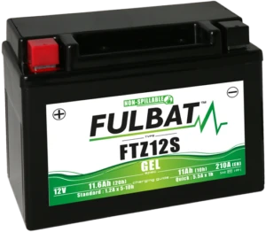 De Fulbat FTZ12S Gel motor accu is onderhoudsvrij. Heeft een spanning van 12V, een capaciteit van 18H en een startcapaciteit van 210 A (CCA). De FTZ12S GEL is tot 90 graden kantelbaar. De afmetingen zijn 150 mm lang, bij 88 mm breed en 110 mm hoog.